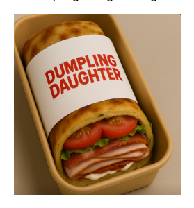 Roasted turkey, Applewood bacon, lettuce, and tomato in a scallion pancake wrap, with Dumpling Daughter Signature Sauces.